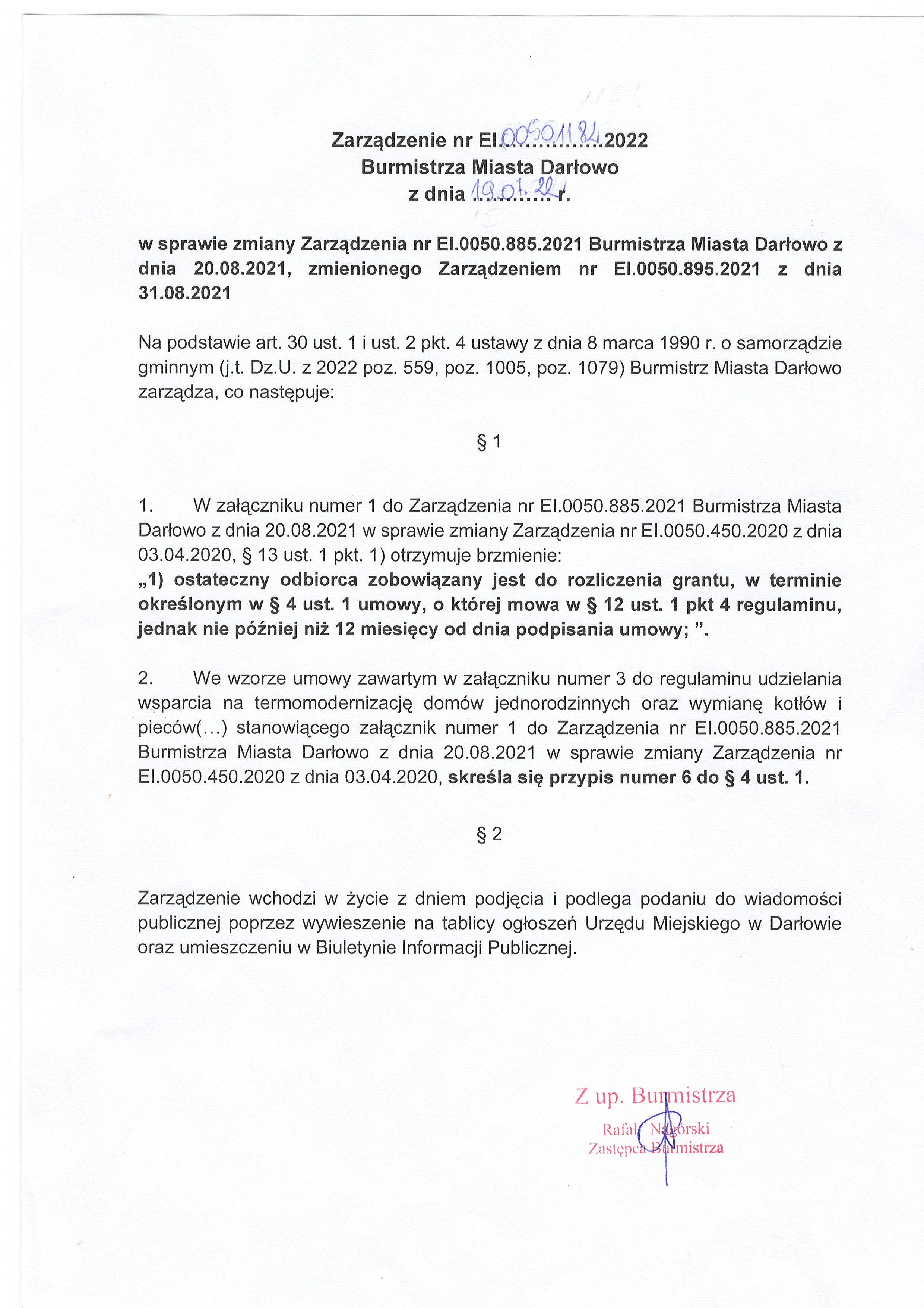w/s zmiany Zarządzenia nr EI.0050.885.2021 Burmistrza Miasta Darłowo z dnia 20.08.2021, zmienionego Zarządzeniem nr EI.0050.895.2021 z dnia 31.08.2021