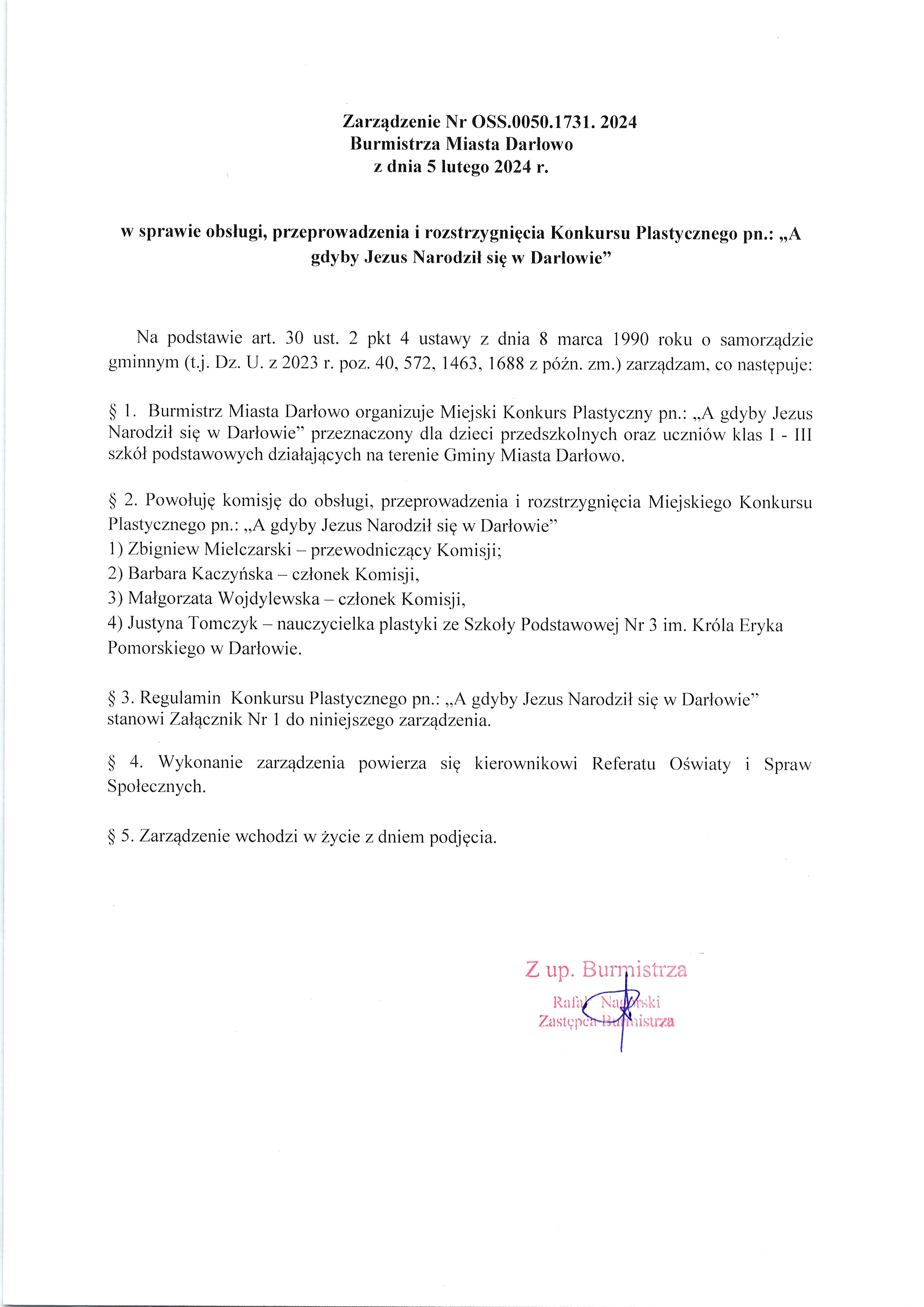 ws. obsługi, przeprowadzenia i rozstrzygnięcia Konkursu Plastycznego pn.: "A gdyby Jezus Narodził się w Darłowie"